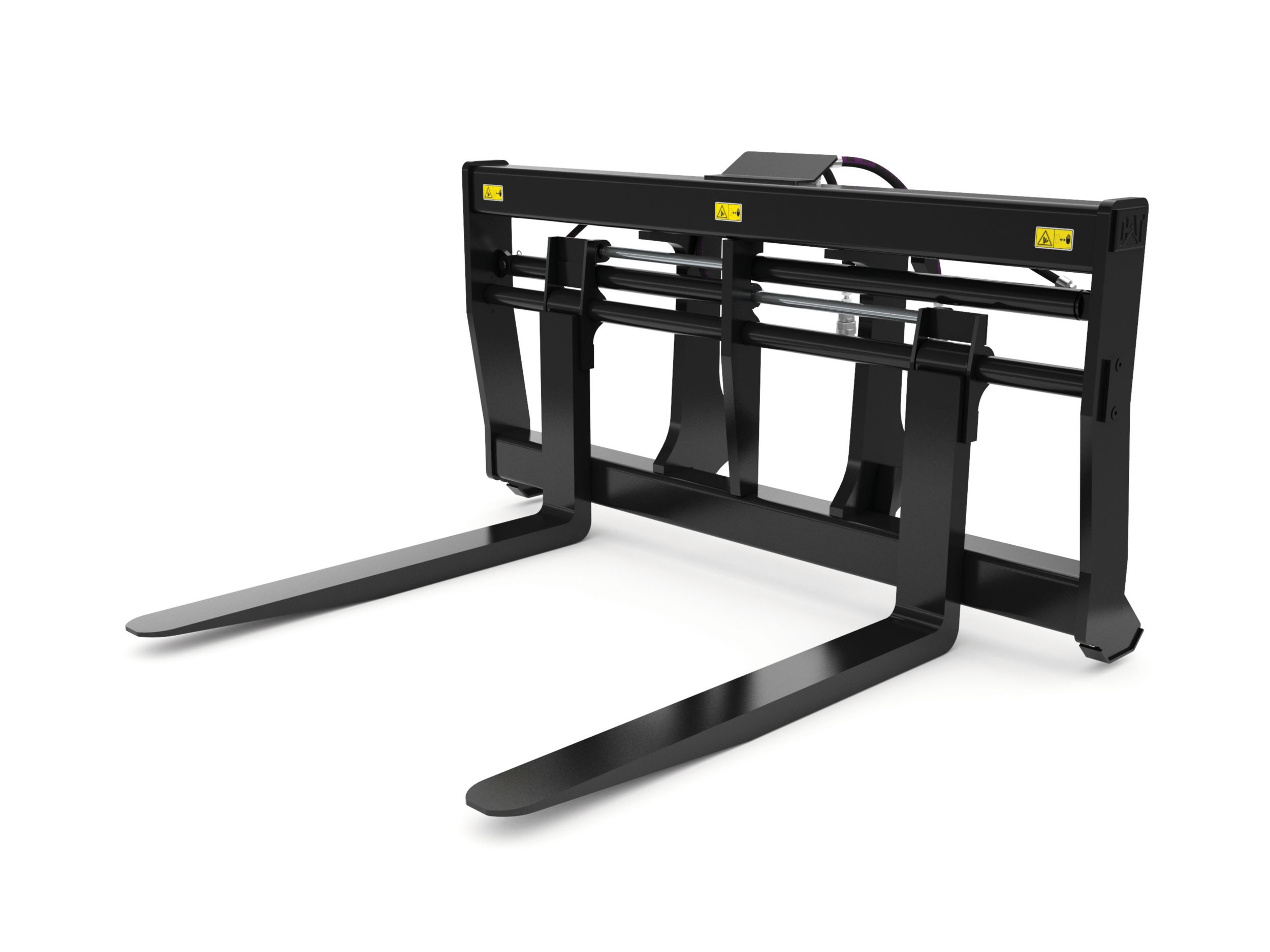 Pallet forks are for moving palletized loads on construction sites, handling bagged fertilizer and seed at landscaping and nursery sites.